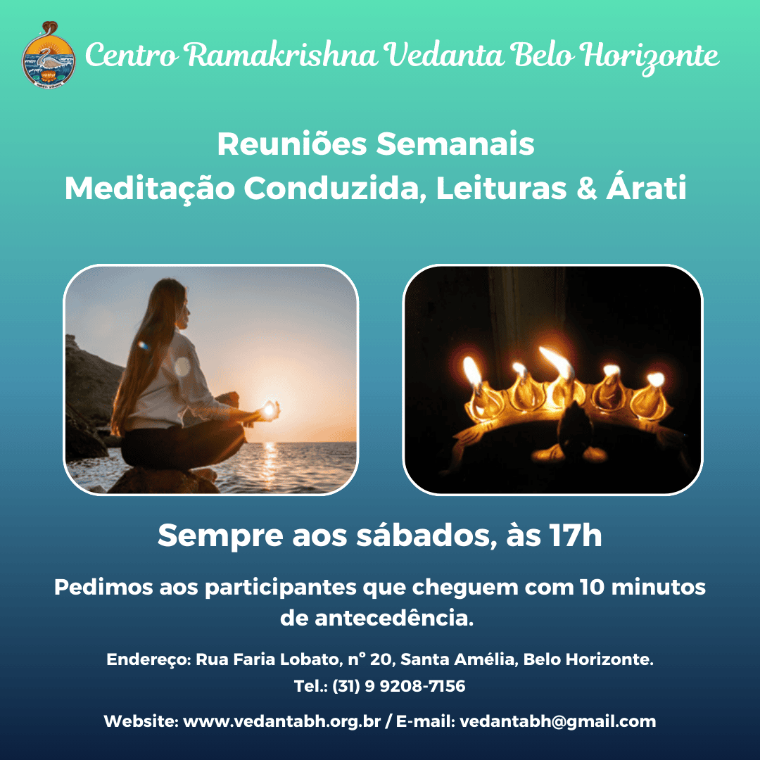 Meditação Conduzida, leituras espirituais e Árati (ritual vespertino)